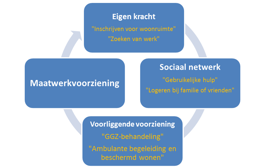 De burger dient zich ervan bewust te zijn dat hij eerst uitgaat van zijn eigen mogelijkheden. Deze mogelijkheden moet hij verkennen en hij moet kunnen uitleggen dat deze mogelijkheden niet aanwezig zijn of niet zullen voldoen.