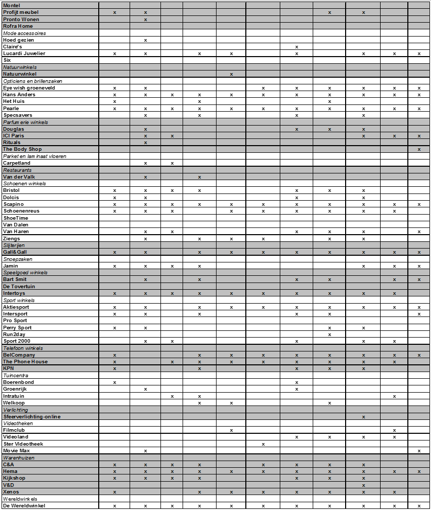 mee (kunnen) gaan in de ontwikkelingen. Het aantal faillissementen is in 2012 met 21,7% toegenomen ten opzichte van 2011 (CBS). In 2012 zijn er in Nederland 758 bedrijven failliet verklaard. Vooral kledingwinkels, meubelzaken, lampenwinkels en doe-het-zelfzaken (elsevier.nl, 23 februari 2013). In het 1e halfjaar van 2013 gingen in Nederland in totaal 530 winkelbedrijven failliet. Vorig jaar waren dat er in diezelfde periode 482 (retailnews, 30 augustus 2013).