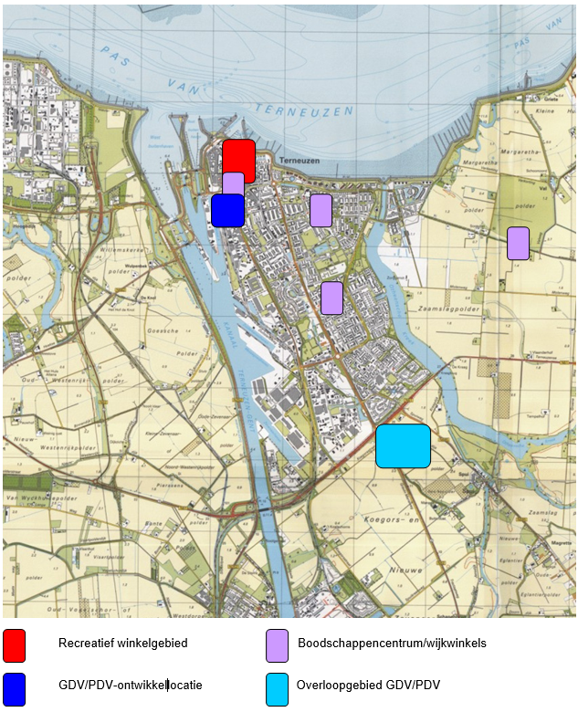 Naast de beoogde detailhandelsontwikkelingen bij het leisurecenter lopen er in 2013 nog twee concrete projecten met betrekking tot de ontwikkeling van (nieuwe) winkelgebieden. Het betreft de herontwikkeling van de kop van de Noordstraat en de ontwikkeling van een PDV/GDV-locatie aan de Kennedylaan-West in Terneuzen. Daarnaast zijn er met enige regelmaat vestigingsaanvragen voor detailhandel buiten de voorziene winkelgebieden. Dit kan zijn op bedrijventerreinen, waar het dan conform bestemmingsplannen niet toegestaan is. Maar ook in aanloopstraten, waar het vanuit concentratieoogpunt onwenselijk is. In beide gevallen geldt, wat willen we en wat kunnen we ermee. Indien de gemeente niet mee wil gaan in bepaalde aanvragen, is het wenselijk alternatieve vestigingslocaties te kunnen aandragen. Dit alles met het oog op overlevingskansen op de langere termijn van zowel de individuele ondernemer als Terneuzen als winkelstad. Het belangrijkste doel van dit rapport is het verschaffen van duidelijkheid over de gewenste detailhandel ontwikkelrichting in de gemeente Terneuzen en de belangen die daarin zijn meegewogen. De gemeente zet hiermee voor zichzelf een koers uit en biedt hierdoor een frame waarop bij detailhandel betrokken partijen als ondernemers, ontwikkelaars, eigenaren en beleggers hun strategie en investeringen kunnen afstemmen.