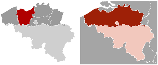 Figuur B2: Oost-Vlaanderen (links) en het Vlaams Gewest (rechts) in beeld