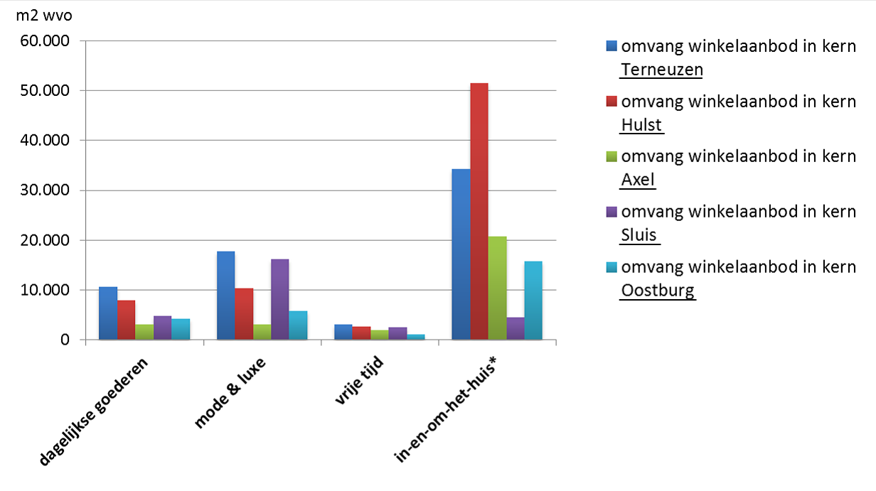 Het aantal m2 wvo in de kern Terneuzen bedraagt circa 73.000. In geval de ontwikkellocaties Kop van de Noordstraat en Kennedylaan-West tot ontwikkeling komen, wordt er ongeveer 22.000 m2 wvo (exclusief leisure gerelateerde detailhandel in het leisurecenter) toegevoegd.
