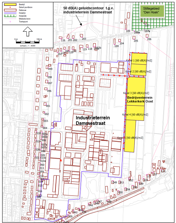 Voor het bedrijventerrein Lekkerkerk Oost is een akoestische verkavelingsmodel opgesteld om de beschikbare geluidsruimte zo goed mogelijk te verdelen. De kavels zijn zodanig ingevoerd dat ze voldoende geluidsruimte hebben op basis van de toegestane categorie van de inrichtingen in het bestemmingsplan.