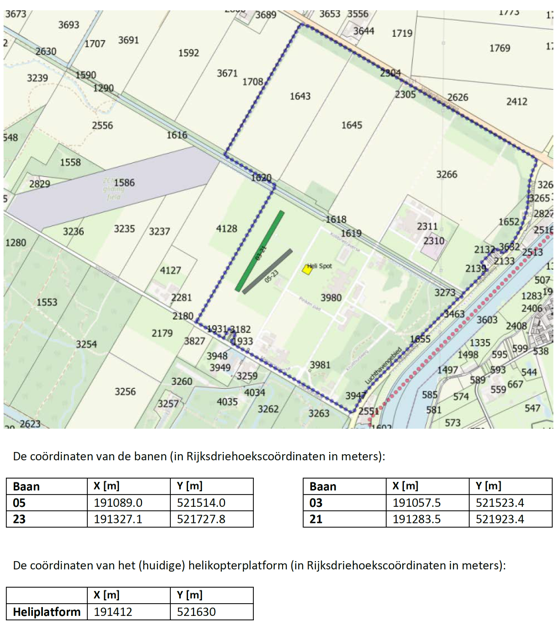 De luchthaven mag uitsluitend worden gebruikt voor het bedrijfsmatig uitvoeren van vluchten ten behoeve van het eigen bedrijf, met een bemande helikopter met een lengte over alles van maximaal 20 meter, onbemande luchtvaartuigen met een startgewicht tot 750 kg en bemande vaste-vleugelvliegtuigen met een startgewicht tot 750 kg.