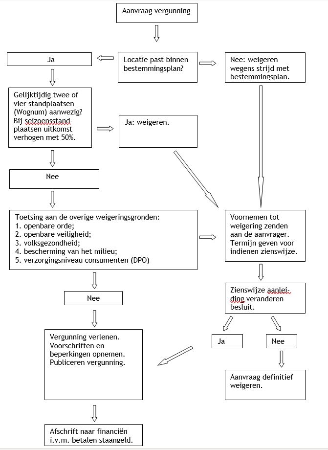 Artikel 6: wanneer één van deze weigeringsgronden aan de orde is, kan het college de vergunning weigeren. Uit de jurisprudentie blijkt dat de beperking van het aantal te verstrekken vergunningen in het belang van de openbare orde en verkeersveiligheid is toegestaan. Dit neemt niet weg dat iedere aanvraag voor het innemen van een standplaats op haar eigen karakter en eigenschappen beoordeeld moet worden. Betrokken afdelingen en indien noodzakelijk de politie worden om advies gevraagd.