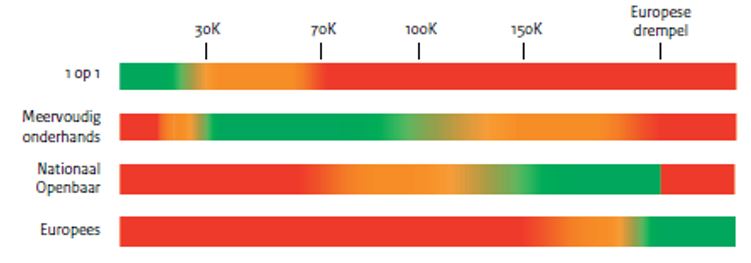 Boven de drempel van de Europese aanbesteding bestaat in principe, de uitzonderingen in de Europese richtlijnen daargelaten, de verplichting Europees aan te besteden.