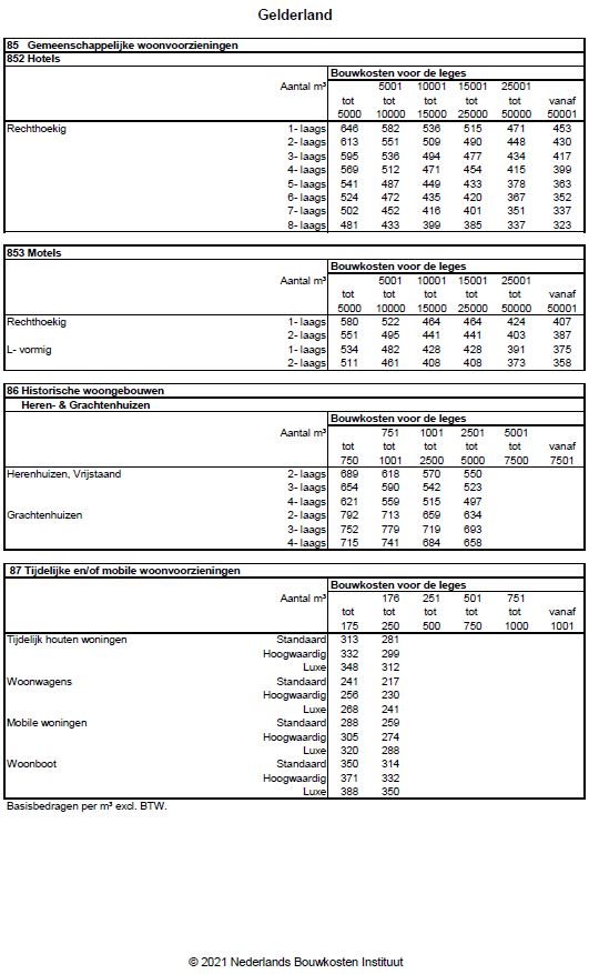 Door ze te vermenigvuldigen met de inhoud (per m3) of oppervlakte (per m2) van het gebouw kan men de totale gebouwkosten per gebouw of object uitrekenen.