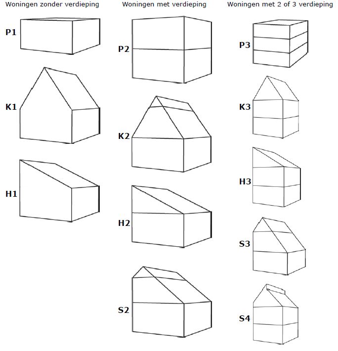 De gebouwen zijn ingedeeld aan de hand van de O-Tabel van het SFB Systeem