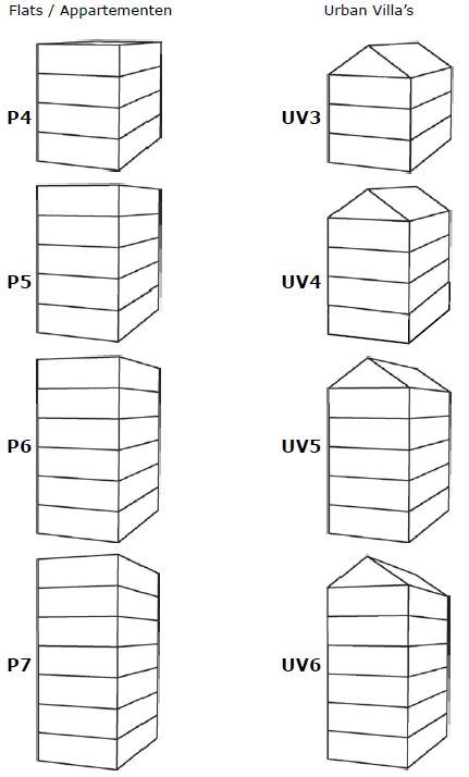Het kunnen verschillende geveltypen zijn bv. andere materialen voor de kozijnen.