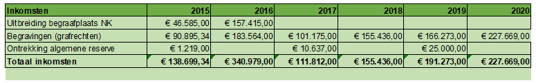 Door het grote aantal begravingen in 2020 waren de inkomsten veel hoger dan begroot.