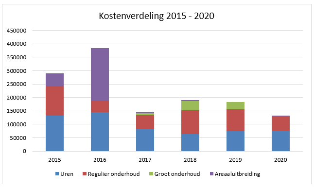 De afgelopen jaren is er – naast beheer en regulier onderhoud – een areaaluitbreiding en groot onderhoud geweest. Een overzicht van de totale kosten is te vinden in bijlage 5.