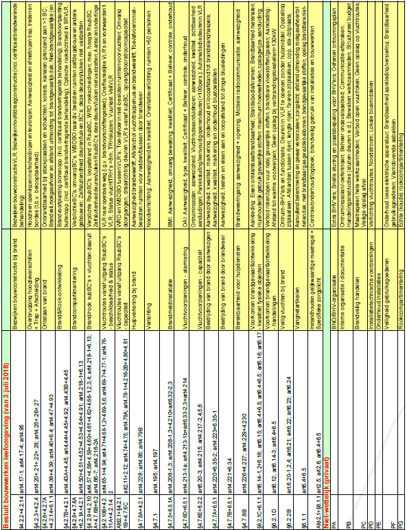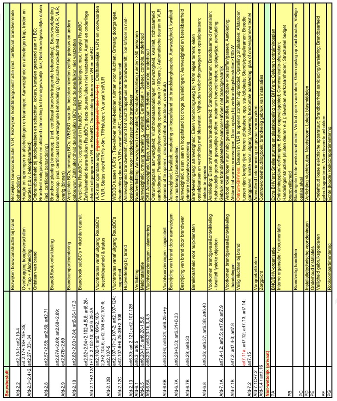 In 2016 is onder leiding van Efectis en in samenspraak met de deelnemende gemeenten een prioritering van eisen voor de verschillende (sub)gebruiksfuncties vastgesteld. In 2020 heeft de brandweer aan Efectis55 gevraagd om de gebruikte methode van prioritering in inspectieonderwerpen opnieuw te valideren en om te zetten naar het Bbl. De gebruikte methode voor het prioriteren van inspectieonderwerpen is ook nu gebruikt als basis voor de strategie.