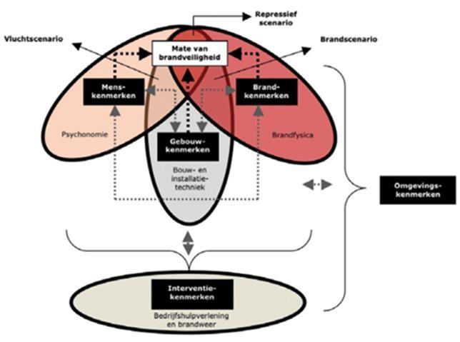 Uit het kenmerkenschema blijkt dat de verschillende aspecten elkaar beïnvloeden. De mens staat echter centraal in het samenstel van gebouw en brandveiligheid. De mens is hierin zowel de veroorzaker als de drager van risico’s. Als veroorzaker spelen zij een rol bij het ontstaan van brand. Zoals bijvoorbeeld door brandstichting, maar ook het nalaten van onderhoud van installaties kan ertoe leiden dat er brand ontstaat.