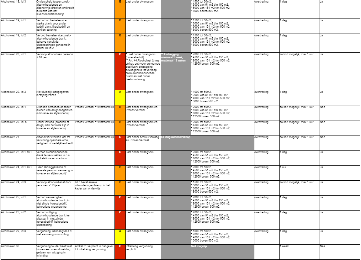 In de hierna opgenomen tabel 1 zijn de verschillende stappen omschreven zoals ik optreed tegen overtredingen van de Alcoholwet.