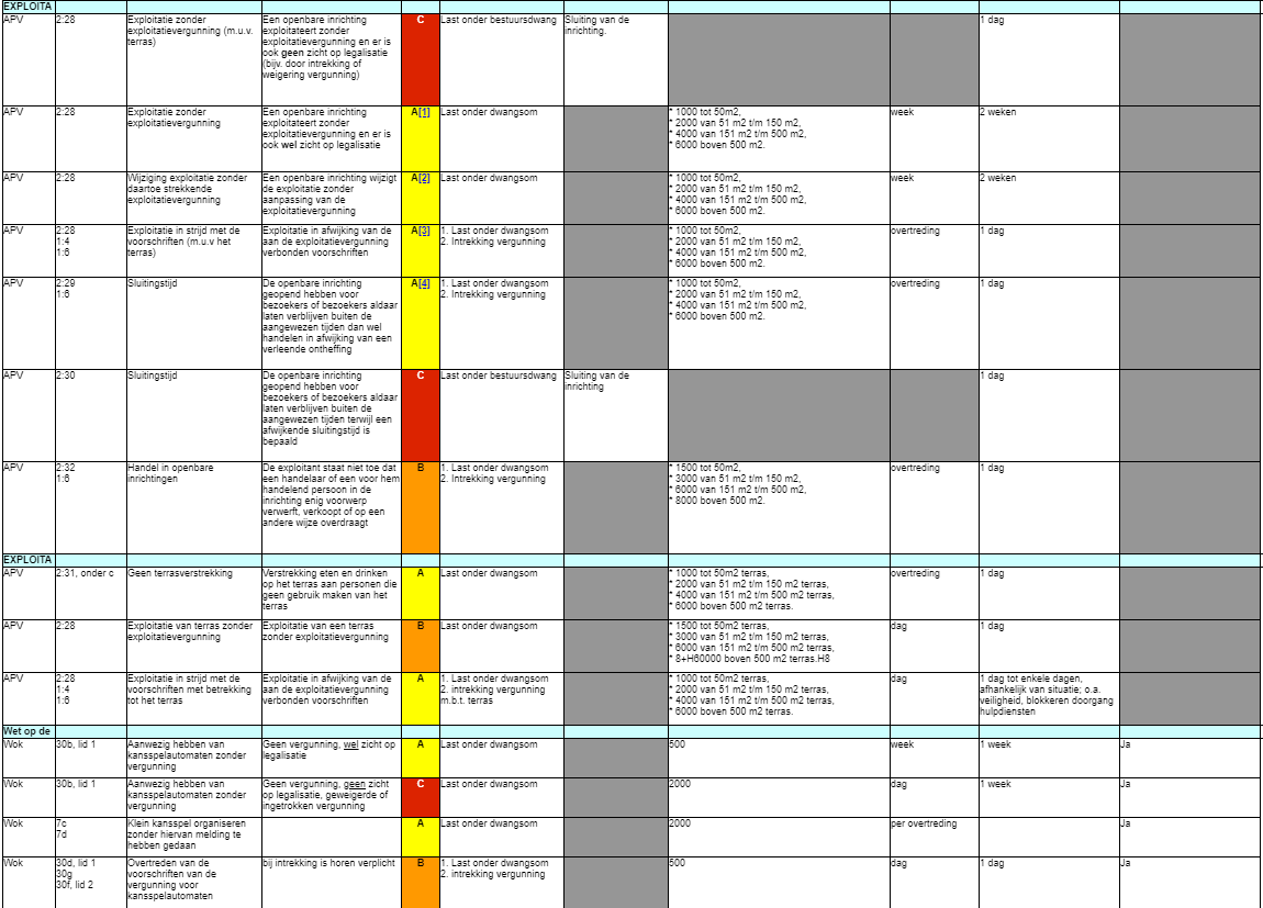 De mogelijke overtredingen en de bestuurlijke opvolging die daarop kan worden toegepast zijn weergegeven in bijgaande sanctietabel. Hieronder volgt een toelichting op een aantal begrippen.
