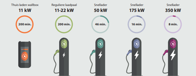 Figuur 2 - Verschillende typen laders en laadsnelheden voor personenauto’s