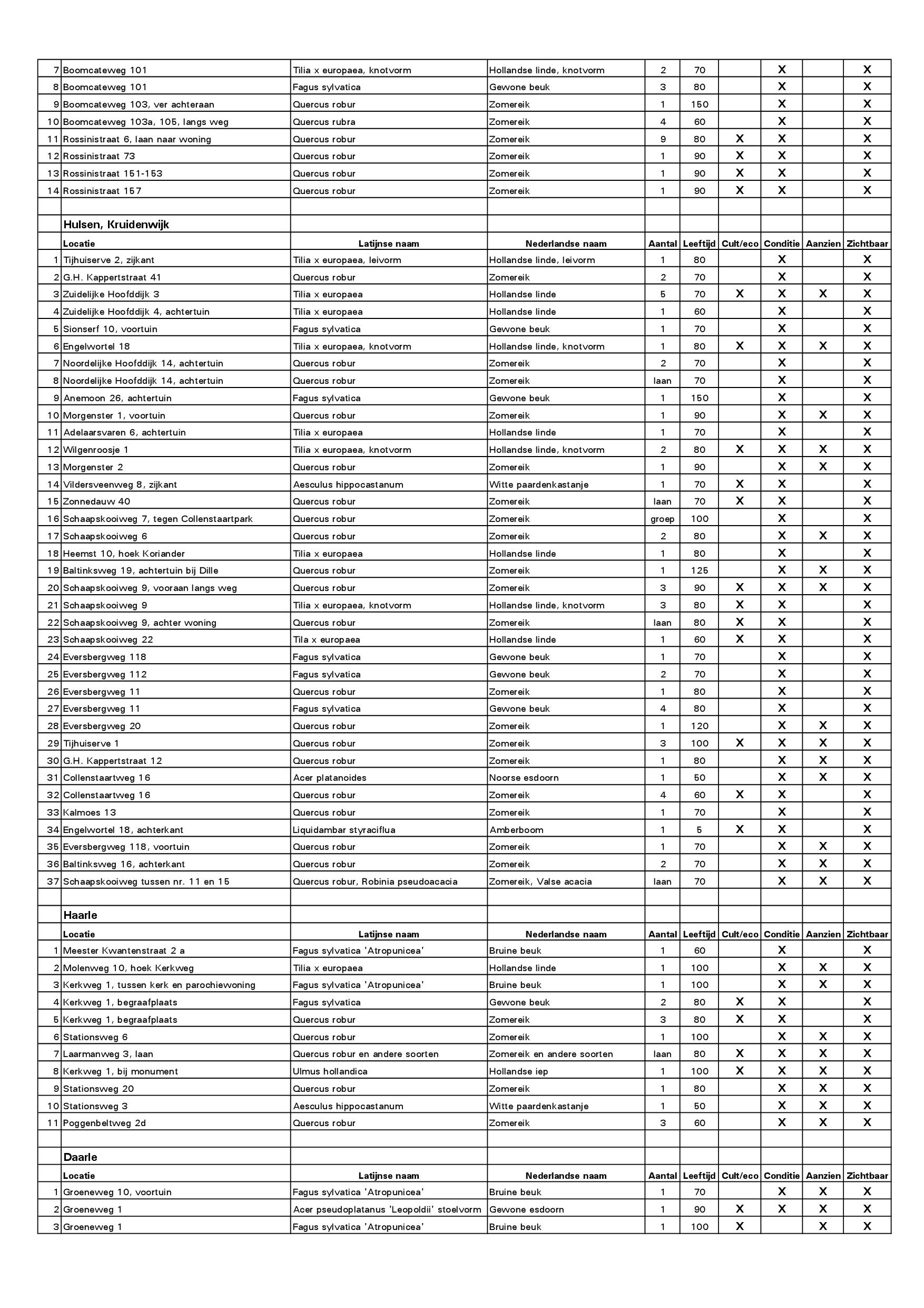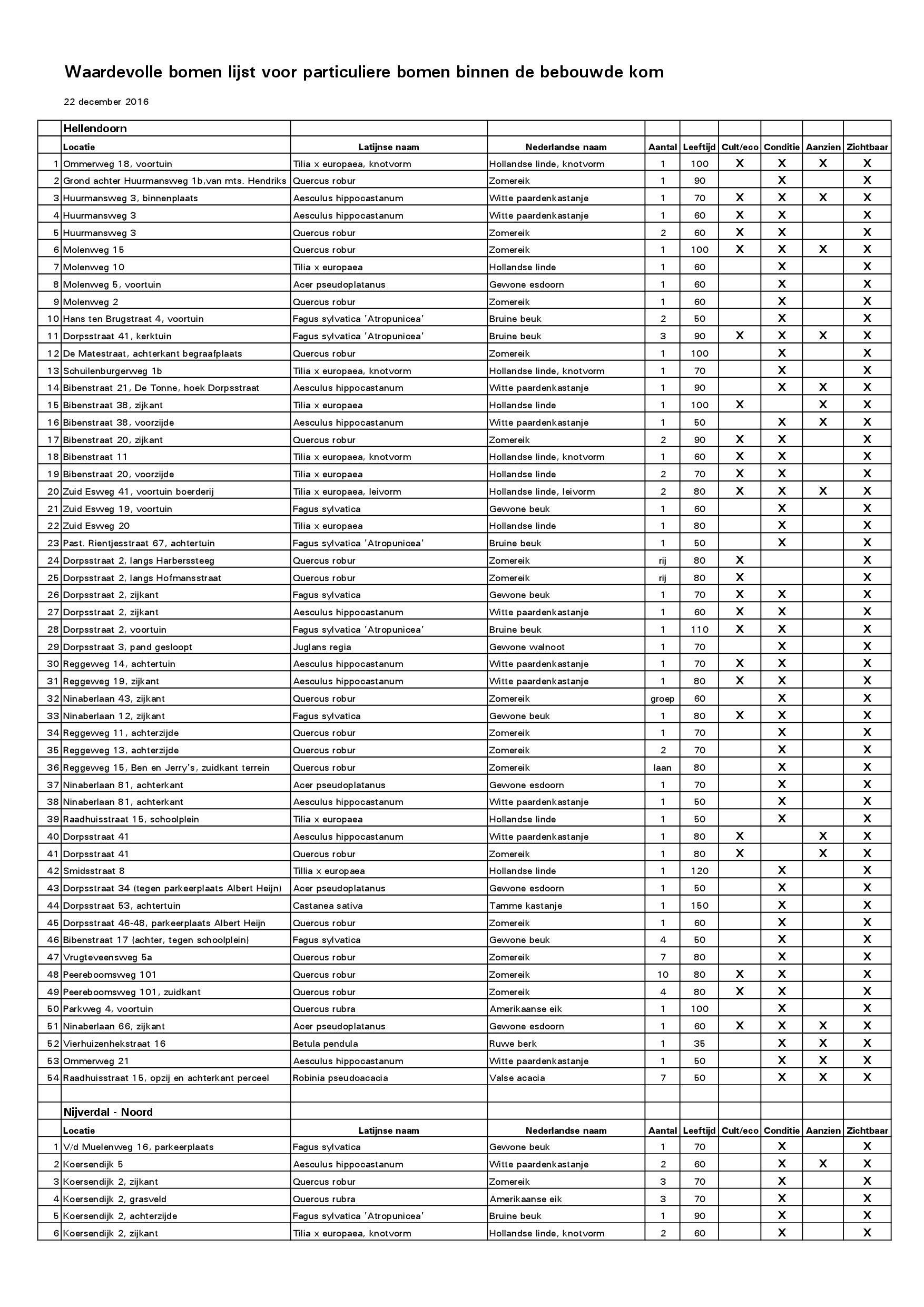 | Externe bijlagen | Waardevollebomenkaart, versie 22 december 2016 Waardevollebomenlijst 1 Waardevollebomenlijst 2 Waardevollebomenlijst 3 Waardevollebomenlijst 4 Waardevollebomenlijst 5 Waardevollebomenlijst 6 |