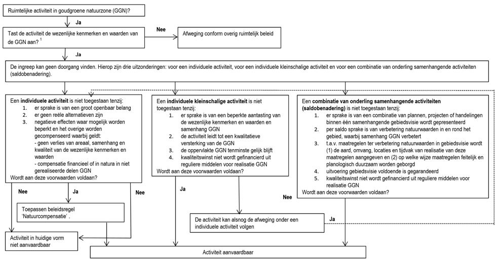 Een ruimtelijk plan dat betrekking heeft op een gebied dat deel uitmaakt van de Goudgroene natuurzone, maakt geen nieuwe activiteiten dan wel wijziging van bestaande activiteiten mogelijk die de wezenlijke kenmerken en waarden van het gebied aantasten.