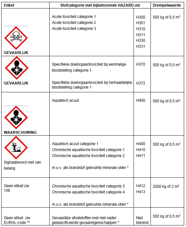 Saq de wateroplosbaarheid van de stof is in mg/l.