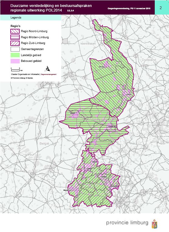 bestuursafspraken regionale uitwerking POL2014: gezamenlijke afspraken van de colleges van burgemeester en wethouders van de gemeenten in een regio en gedeputeerde staten van Limburg over de wijze waarop zij in zijn algemeenheid zullen handelen in het kader van de toepassing en verdere uitwerking van het POL2014 en specifiek voor de thema’s wonen, detailhandel, kantoren, bedrijventerreinen, energie, landschap, land- en tuinbouw en vrijetijdseconomie, zoals opgenomen in de bij deze paragraaf behorende bijlage 1 voor de regio Noord-Limburg (Bestuursafspraken POL-uitwerkingen Noord-Limburg), bijlage 2 voor de regio Midden-Limburg (Bestuursafspraken Midden-Limburg POL2014) en bijlage 3 voor de regio Zuid-Limburg (Bestuursovereenkomst Regionale afspraken Zuid-Limburg);