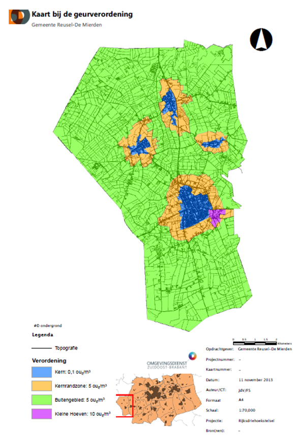 Op grond van artikel 6, lid 1 van de Wet en in afwijking van artikel 3, lid 1 van de Wet bedraagt de maximale waarde voor de geurbelasting van een veehouderij voor zover de voor geur gevoelige objecten in het gebied zich bevinden binnen de bebouwde kom: 0,1 odour units (ouE/m3).