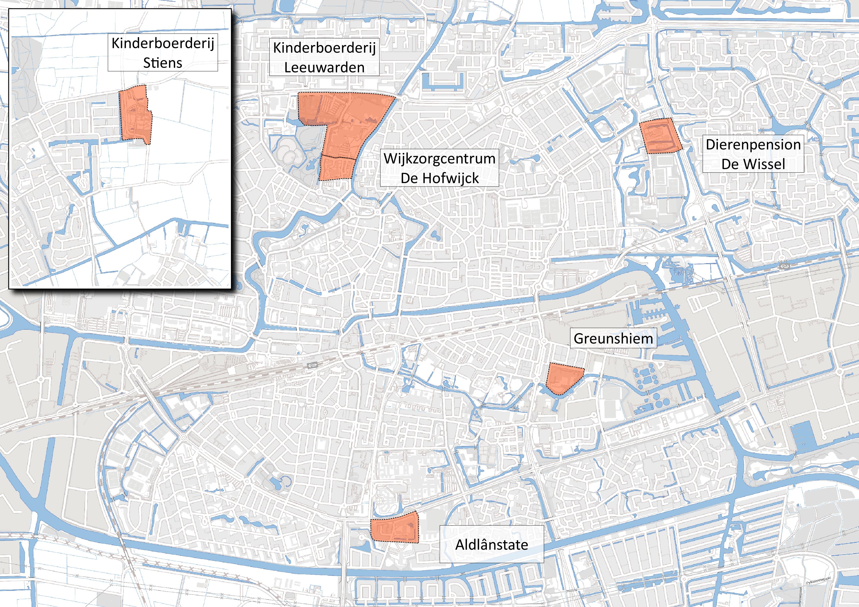 Gebied 2, Wijkzorgcentrum de Hofwijck en kinderboerderij Leeuwarden: Dammelaan, Dokkumertrekweg, Camstraburen, Dirk Zeperweg, Rengerslaan, Ubbo Emmiuslaan en Rengerspad.