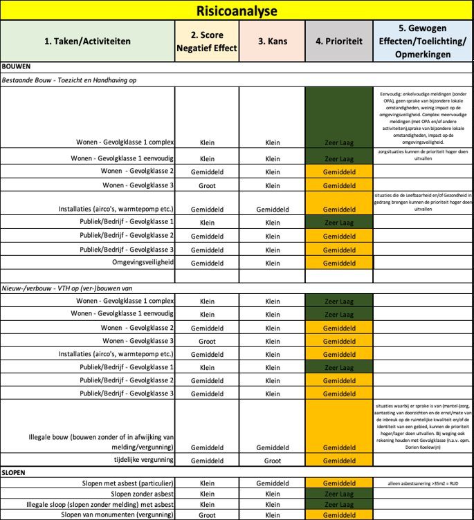I.werken we risicogericht met een efficiënte inzet van mensen en middelen door onze uitvoering en handhaving in ieder geval te richten op die activiteiten die wij Zeer Hoog en/of Hoog hebben geprioriteerd.